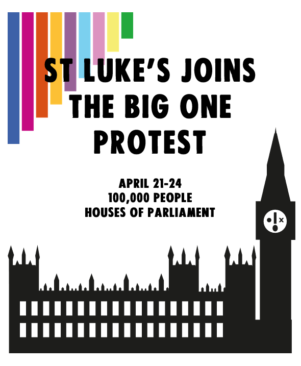 CCA is holding worship led by different groups over the four days at noon and 3pm, and on Sunday 23 April our service will be at the protest as arranged with our vicar and the churchwardens. Beginning at 12 noon and led by young people whose future is in the balance. (We'll have more details on where we'll meet etc. closer to the time.)